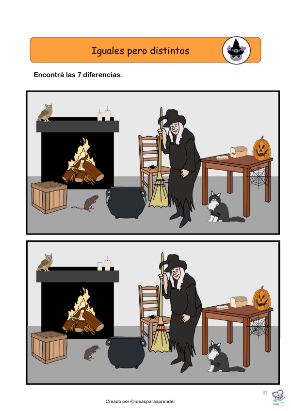 Cada página propone un desafío accesible y divertido, con consignas simples, ilustraciones coloridas y estética temática de Halloween.
