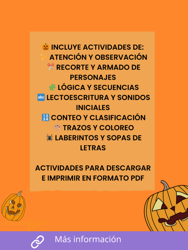 Perfecto para trabajar en el aula, en casa o en sesiones psicopedagógicas durante la temporada de Halloween.