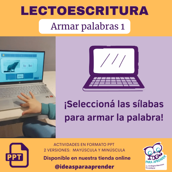 Un recurso interactivo en PowerPoint para que los chicos aprendan jugando. Forman palabras a partir de sílabas, escuchan cómo suenan y se divierten mientras refuerzan la lectoescritura. ¡Ideal para motivar y aprender de manera dinámica!. La actividad viene en dos tipografías de letras: imprenta mayúscula e imprenta minúscula.